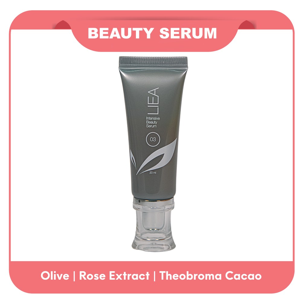 LIEA Intensive Beauty Serum diperkaya dengan multivitamin seperti vitamin A, C, dan E, serta mempunyai sifat antioksidan, antibakteria, dan antiinflamasi. Serum ini membantu melembapkan dan menganjalkan kulit.