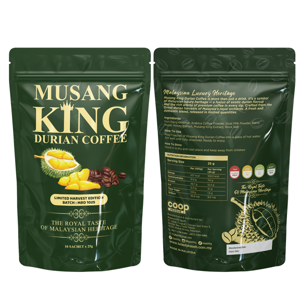 Kopi Durian Musang King lebih daripada sekadar minuman. Ia adalah simbol Warisan Mewah Melayu, gabungan rasa durian musang king dan aroma kopi premium yang kaya dalam setiap tegukan.